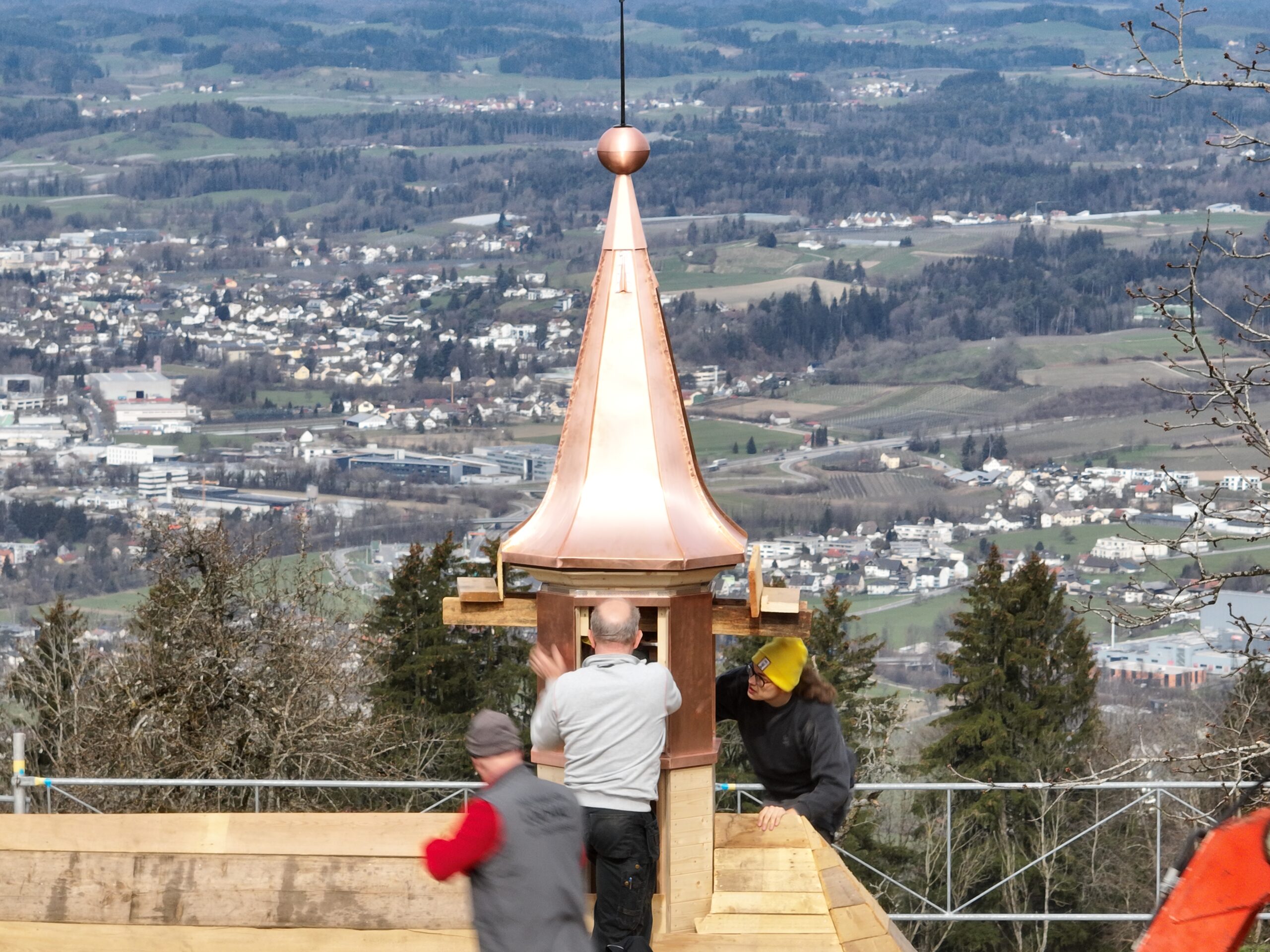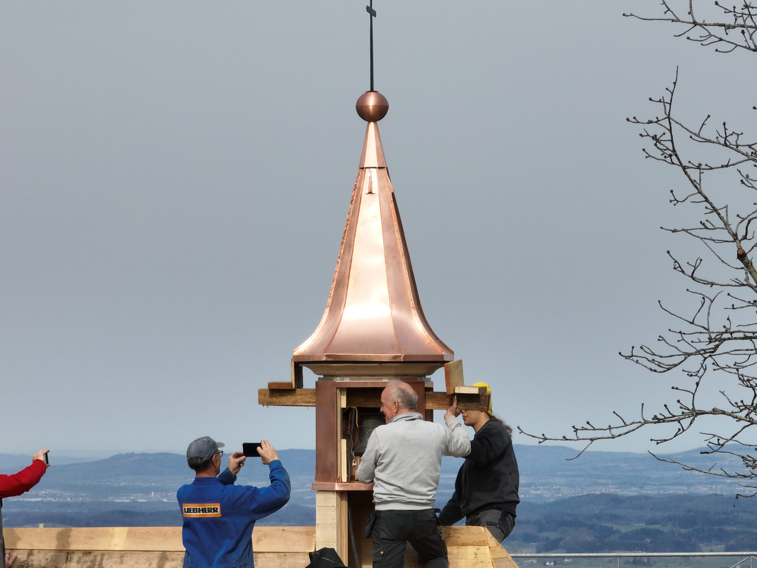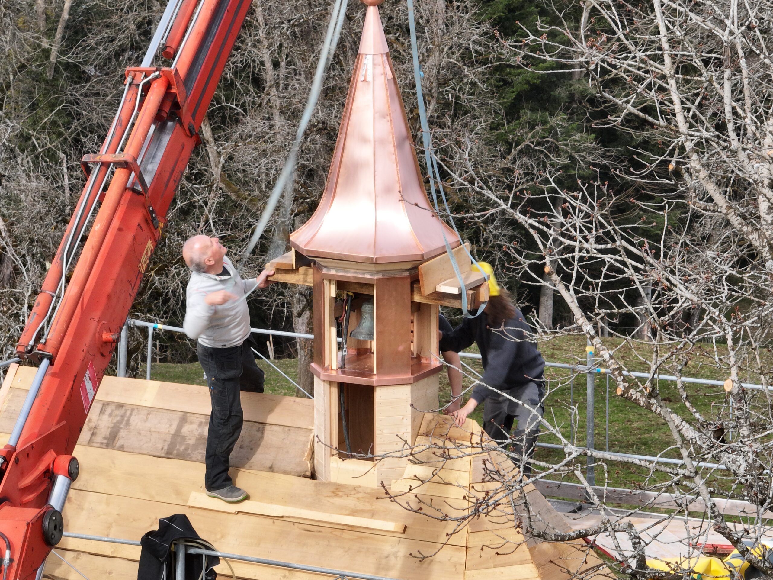 Mit Stolz präsentieren wir eines unserer jüngsten Projekte, das im Rahmen des 3. Berufsschuljahres realisiert wurde: den Bau und die Verblechung eines kleinen Kirchturms in Bregenz – und das komplett in Kupfer.