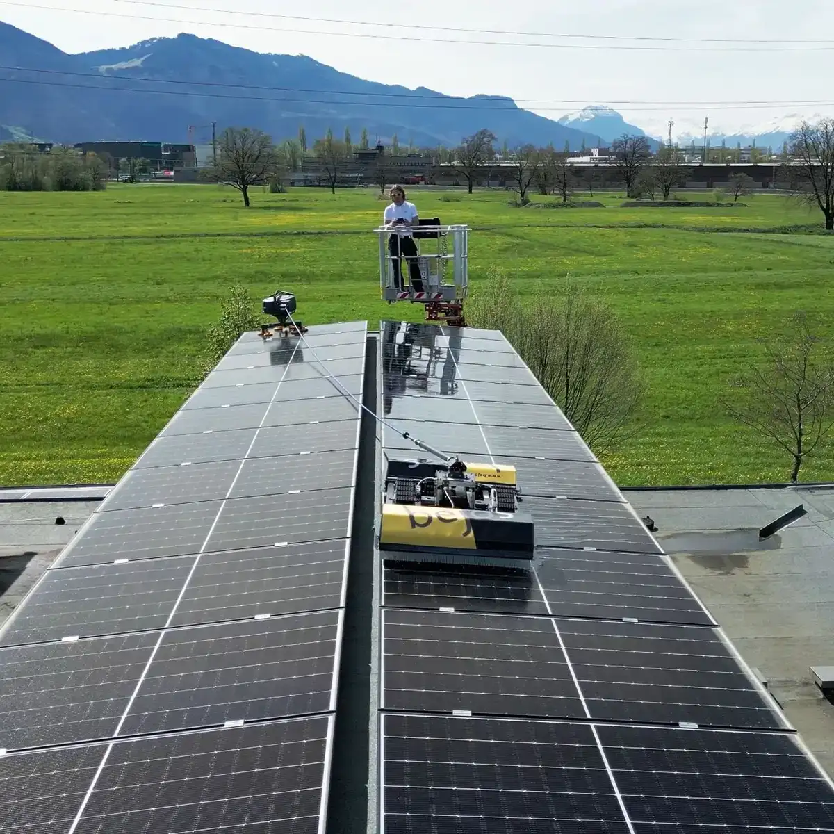 „Die PV-Reinigung wurde sehr schnell und gründlich durchgeführt. Auch an sehr exponierten Stellen in großer Höhe, die herkömmlich nur mit großem Aufwand zu erreichen sind.“