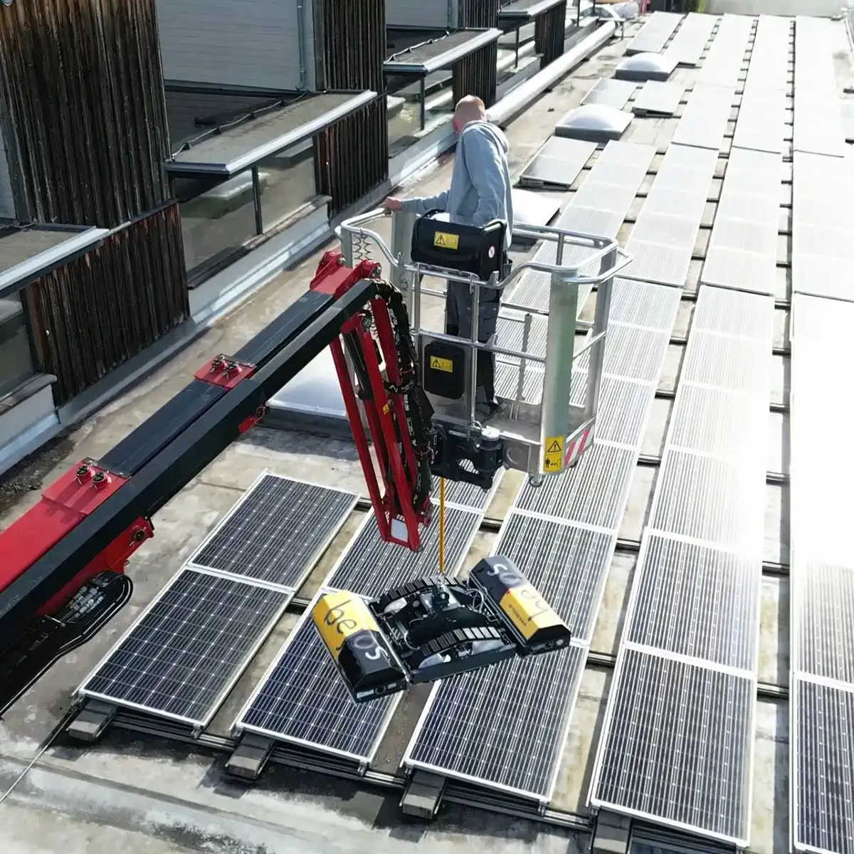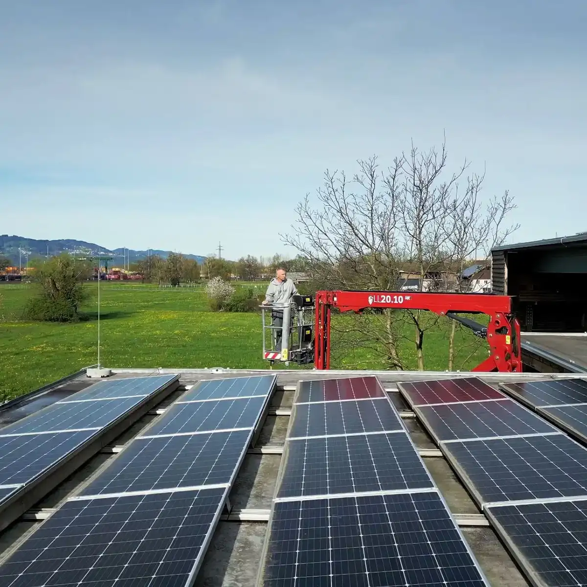Als langjähriger Partner für ihre Generalunternehmerprojekte im Dach- und Flachdachbau war es uns eine Freude, die Firma Berchtold Holzbau nun auch bei der Reinigung ihrer großflächigen PV-Anlage unterstützen zu dürfen. Bei der Firma Berchtold umfasst der Komplex sowohl einen Flachdachbereich als auch Scheddelemente, die eine manuelle Reinigung der PV-Anlage praktisch unmöglich machen.