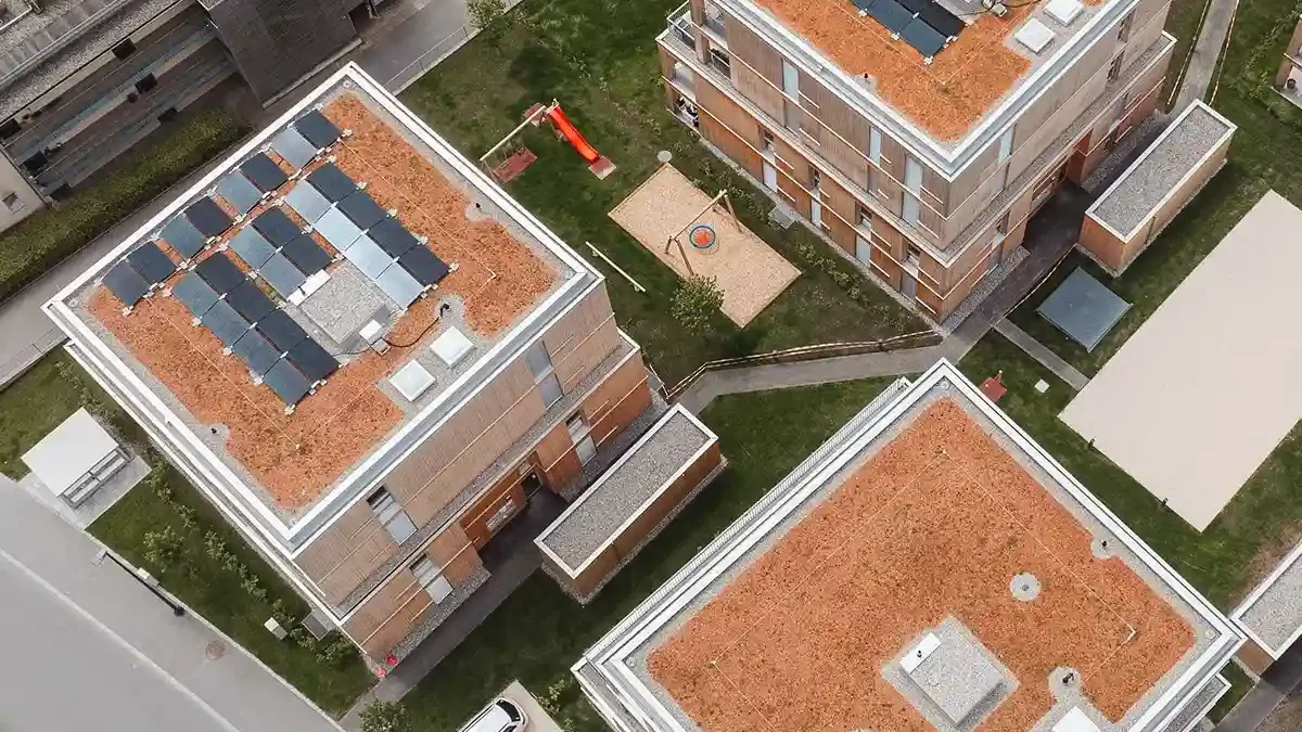 Flachdächer ermöglichen die Schaffung wertvoller grüner Oasen. Darüber hinaus sind sie ideal für die Installation von Solarmodulen geeignet, da ihre flache Oberfläche eine maximale Ausrichtung zur Sonne ermöglicht, was die Energieeffizienz des Gebäudes steigert. Weiters können diese Dachtypen durch die Integration von fortschrittlichen Dämmmaterialien dazu beitragen, Energiekosten zu senken und den thermischen Komfort im Inneren des Gebäudes zu verbessern. Auch in puncto Design lassen Flachdächer keine Wünsche offen: Sie bieten die perfekte Leinwand für minimalistische und ultramoderne Architekturstile.